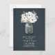 cute rustic mason jar save the date postcards with anemones, dogwood and eucalyptus flowers accompanied with baby's breath blossoms.