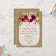 Rustic mason jar floral baby shower invitation featuring a burlap background, mason jar silhouette with burgundy floral accent. Super cute!