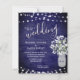Rustic Mason Jar Lights Navy Blue Wedding Invite