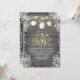 Rustic barn wood and white floral lace engagement or couples shower invitation with enchanted string lights and mason jars full of starry golden fireflies.
