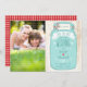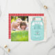 This rustic wedding invitation suite features a hand-drawn minty blue mason jar on a tree bark background. Hand-lettered type, the gingham pattern at the back and a tag attached with red & white bakers twine makes this a perfect choice for country theme weddings. Colours can be customised to suit your wedding's motif, just shoot me a message.