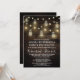 Rustic Mason Jar Rehearsal Dinner Invitations - features a printed wood background with string lights and lighted mason jars.