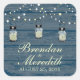 This sticker be used for your wedding candy buffet table for favour boxes, or bags, travelling guest goodie bags and much more! A string of hanging lights with three glowing mason jars. A Distressed Weathered Grey Blue Barn wood background. Perfect for your Mason Jar Themed Event. please email me at paula@labellarue.com if you have a colour change needed.