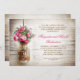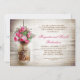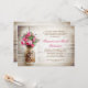Romantic rustic wood background and mason jar with dark pink flowers wedding anniversary party or anniversary dinner invitations. I suggest a beautiful texture linen paper for this design.