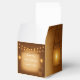Rustic wedding favour box featuring a wood background with mason jar and string light accents. Perfect for barn, farmhouse, and country-style weddings. Personalise with your names and wedding date to thank guests with style.