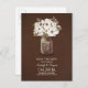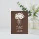brwon rustic mason jar save the date postcards with anemones, dogwood and eucalyptus flowers accompanied with babys breath blossoms.