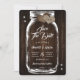 Rustic wedding save the date card featuring a mason jar and burlap hearts against a barn wood background adorned with twinkle lights. Easily personalise this romantic rustic wedding save the date online. Matching items available to complement this country wedding save the date card.