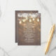 Rustic barn lace, mason jars and string lights wedding insert with directions, reception details, accommodations and other information
