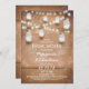 Perfect invitation for vintage country bridal shower with mason jars and strings of lights. Design consists from rustic wood background sparkling night lights with hanging mason jars. Please contact me if you need help with customisation or have a custom colour request.