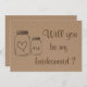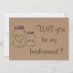 Will you be my bridesmaid card featuring rustic brown kraft paper background with chic mason jar and heart illustration looking beautiful and perfect for your friend to make her feel special.