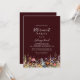 This rustic meadow botanical retirement party invitation is perfect for a modern event. The design features seamless hand-painted yellow, navy, blue, yellow, pink, and blush wildflowers with botanical leaves in a deep burgundy background.