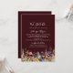 This rustic meadow botanical we still do vow renewal invitation is perfect for a modern vow renewal ceremony and celebration. The design features seamless hand-painted yellow, navy, blue, yellow, pink, and blush wildflowers with botanical leaves in a deep burgundy background.