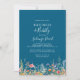 This rustic meadow brunch and bubbly bridal shower invitation is perfect for a modern wedding shower. The design features seamless hand-painted yellow, navy, blue, yellow, pink, and blush wildflowers with botanical leaves in a blue blackground.
