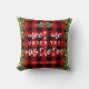 A festive Christmas throw pillow with the words "meet me under the mistletoe" on a rustic buffalo plaid background framed with holiday greenery. Lovely holiday decor for your home!