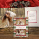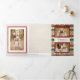 This warm, traditional design features two landscape-orientated photo templates, "Merry Christmas" custom text graphic in an elegant font with flourishes and editable text fields on a red/green/ecru plaid background with holly and pine. The panels feature two additional photo templates, text fields and complementary background graphics.
