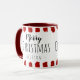 Say "Merry Christmas" with this cute and festive custom mug featuring the greeting "Merry Christmas" in black script and hand written fonts and accented with a rustic painted red striped border on a white background. Personalise the typography with a name and you have the option to replace "Merry Christmas" with words of your own choosing. Designed by © Tim Coffey.