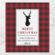 Rustic Red Buffalo Plaid Reindeer Merry Christmas Wine Label