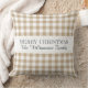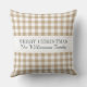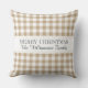 Wonderful festive holiday rustic Christmas pillow with the text Merry Christmas and your family name in modern typography and elegant script calligraphy. The pillow has a beautiful beige gingham pattern in the colour desert camel. Simply add your family name or monogram. Exclusively designed for you by Happy Dolphin Studio. If you need any help or matching products, please contact us at happydolphinstudio@outlook.com. We're happy to help you make your Christmas holiday the most wonderful day!