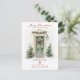 Share the joy of the season and your new beginning with this charming Merry Christmas From Our New Home card. Featuring a hand-painted watercolor green door adorned with a festive wreath, garland, and Christmas trees, this design captures timeless holiday warmth with rustic elegance.