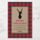 Rustic Kraft Red Buffalo Plaid Reindeer Merry Christmas Mini Wine Bottle Label