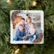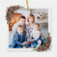 Rustic Merry Christmas Script Family Photo Ceramic Ornament