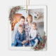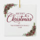 This Christmas ornament features a family photo on the front, framed in 2 corners with bouquets of watercolor pine cones, greenery sprigs, and holly berries. On the back is Merry Christmas in elegant script font, with the family name and year date, in burgundy dark red colour on a white background, framed with pine cone bouquets. Check out the collection for many matching products, or contact me through Zazzle Chat if you would like additional matching products or other colorways.