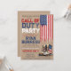 This rustic US Military boots & American flag deployment / overseas active duty base going away / farewell Party double- sided invitation with the saying "CALL OF DUTY PARTY" over rustic kraft background on front, and "When Duty Calls, The Brave Answer" design on back, is a great way to send off a brave Airman (Air Force), Guardian (Space Force), Soldier (Army), Marine (Marines), Sailor (Navy), or Coast Guardsman (Coast Guard) who is heading to deployment / to their new overseas Active Duty Base! ♥ Lovingly created by an Air Force Mum ♥ Featuring a rustic kraft background on both sides with drip USA flag, watercolor US flag combat boots, and vintage red, white, and distressed blue patriotic typography, it is an invitation template for you to easily personalise each line for any branch of service! Need to adjust placement or make fonts bigger/smaller to fit the space provided? No problem! Simply click the blue "Edit using design tool" button at the bottom of the "Personalise" window, click on the element that needs adjusting, and click the "done" button at the top right corner to complete. **Our son is a recent F-16 Crew Chief vet, so I too, had a hard time finding appropriate invitations and cards for BMT & Graduation & Active Duty - all my designs for the full training process, here in my Zazzle store, were created in honour of our son and all our brave military service personnel and families. See all my invitations / cards (available for print & ship or instant digital download for those in a rush) / clothing / vinyl graduation banners / and much more for BMT, Grad Weekend and beyond, available in my store by clicking the blue “by FigLilyCo-military” link in the upper right hand corner of this screen and then click my store name under my photo to see the entire collection. **Custom order requests are always welcome - click the "message" button, or email direct (with a quick response): contact@figandlilyco.com. ♥ From this proud military family to you and yours - we send our sincere blessings, and HUGE thanks for the service, courage, and sacrifice of your US Service Personnel ♥
