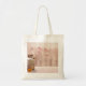 Monogram and name personalised tote bag with a rustic country design. An old rusting milk can with a pretty orange gerbera flower by its side. Wheat and faded red poppies in the background set against a faint wood panel. Wood is just an image, not real.