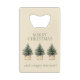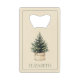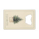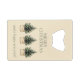 This simple and minimal Christmas credit card bottle opener features small rustic Christmas trees with white lights. Personalise with your choice of special text on the front and back. Makes great personalised party favours for your holiday event.