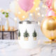 This simple and minimal Christmas wine tumbler features small rustic Christmas tree with white lights. Personalise with your choice of special text. Makes great personalised party favours for your holiday event.