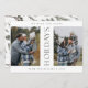 This modern rustic holiday card features two family photos with a vertical "Holidays" message, framed by a clean, minimalist layout. The back showcases a delicate pine branch pattern, capturing a cosy, natural vibe. Perfect for sharing warm wishes with loved ones this season, it combines elegance with a heartfelt holiday greeting.