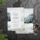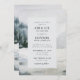 Elements: watercolor painting of rustic mountain lake in winter; elegant serif and sans serif fonts. Colours: blue, green, grey, white, offwhite. Themes: mountains, lakes, outdoor wedding, winter wedding, elegant, rustic, impressionist, watercolor, snowy mountains. Collection: Rustic Mountain Lake Watercolor Wedding Collection. Product Type: Classic Invitation - Vertical