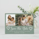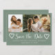 Modern handwritten script hearts rustic sage green save the date wedding with 2 engagement photos. ++++++++++++++ Suitable for spring summer autumn fall or winter weddings.