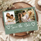 Modern handwritten script doodle hearts rustic sage green save the date wedding with 2 engagement photos. ++++++++++++++ Suitable for spring summer autumn fall or winter weddings.