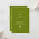 This rustic modern wedding invitation features a bright olive green background with clean white typography. The design mixes natural charm with a simple, contemporary layout. Its bold green tone creates an eye-catching and stylish look, while the minimalist style keeps the invitation elegant and easy to read. Fully customizable with your wedding details, this invitation is ideal for couples who want a fresh, natural, and modern wedding theme.