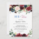 This rustic modern calligraphy he or she gender reveal invitation is perfect for a simple baby gender reveal. The design features burgundy, red, navy, blue and blush radiant and graceful hand-painted flowers, inspiring natural beauty.