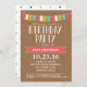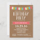 Send your guests this stylish birthday party invitation featuring a rustic background with colourful bunting banners and modern typography. Be sure to check out all of the paper types available.