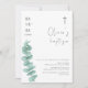 Rustic Modern Greenery Eucalyptus Cross Baptism Invitation