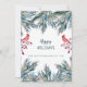 Modern rustic style winter holidays greeting card featuring trendy navy teal and hunter green pine boughs, holly berries, and two red cardinal birds together with "Happy Holidays" editable typography script wishes and your name / signature. +++++++++++ A simple way of sending your Christmas holiday greetings for family or business corporate partners. ++++++++++ The card has a light pink blush colour on the reverse to allow you - if you'd like - to add some personal handwritten lines and signature.