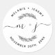 Rustic Modern Leaves Initials Script Round Wedding Classic Round Sticker