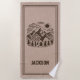 Rustic Modern Mountain Custom Beach Towel with hand drawn style mountain scene with trees and sun. Add your own custom name! Makes a great gift for the guy in your life.