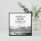 Rustic Modern Mountains Scenery Wedding Invitation featuring beautiful black & white scenery with textured mountains, clouds, lake, and trees