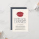 Invite friends to a fun potluck dinner party with these simple and modern invitations, featuring "potluck dinner" in smoky navy handwritten style typography lettering with a red Dutch oven pot illustration. Add your dinner details and let guests know how to confirm their dish details, using the template fields provided.