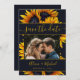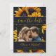 Beautiful and easy to personalise photo wedding save the date card with vibrant yellow-gold hand-painted sunflowers and elegant stripes with trendy modern script over a dark midnight blue background. +++++++++++ Suitable for summer and autumn fall garden / backyard outdoor rustic modern weddings.++++ The colours are changeable. If you need to customise it in a specific colour, please contact the designer through the MESSAGE button below.