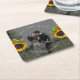 Rustic modern sunflowers photo wedding save date square paper coaster