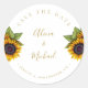 Rustic country traditional wedding save the date sticker featuring beautiful sunflower bouquets on a clear white background. ++++++++ Ideal for your summer or autumn fall elegant outdoor garden, farmhouse barn, or backyard themed weddings. Personalise it with the bride's and groom's names, wedding date and place!
