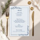 Share your wedding feast with guests in style using this rustic monochrome wedding menu card. Featuring floral accents and elegant script fonts, this design complements barn, country, or garden weddings perfectly. Available in dusty blue, sage green, or warm taupe, the one-colour palette creates a timeless rustic look. Customise with your courses or buffet selections to complete your wedding reception stationery suite.