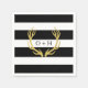 Rustic monogram gold faux foil antlers on a modern black and white stripes background. Easily add your custom monogram initials.