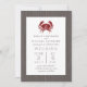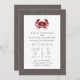 A rustic sea themed wedding invitation featuring an illustration of a crab and a weathered wood border and reverse side. Personalise the text with details of your occasion.