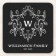 Rustic Monogram Family Name Black and White Square Paper Coaster